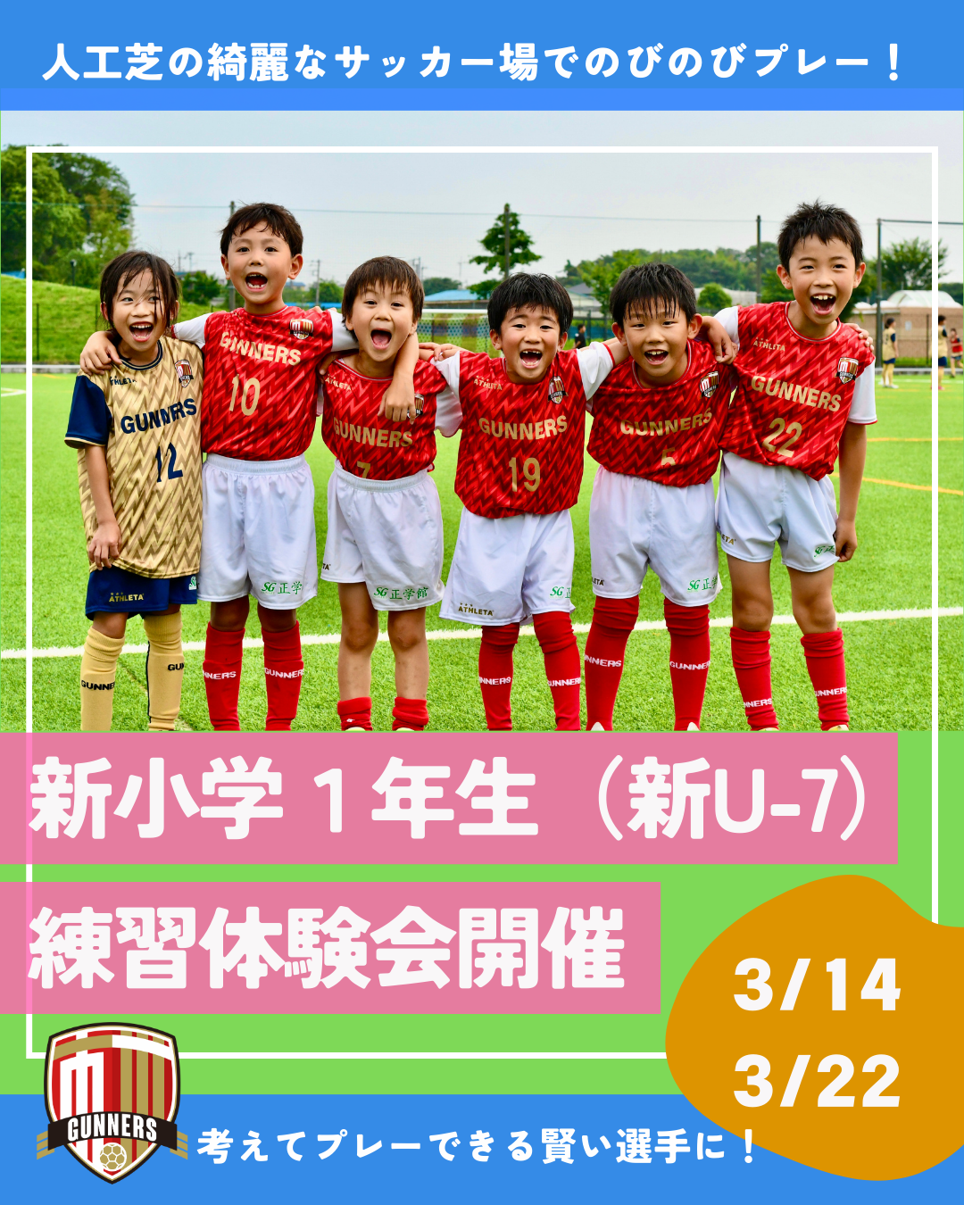 FC市川GUNNERSでは、来年度(2026年度)に小学校1年生となる新U-7選手を募集いたします。